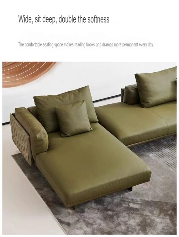 It’s a perfect blend of minimalist design and superior comfort. This set includes three pieces, each meticulously crafted to enhance your living space. The sofa measures 3680mm in width, 1030mm in height, and 870mm in depth, making it an ideal choice for spacious interiors. The framework is constructed from deciduous pine and solid wood edges, ensuring durability and longevity. The contact surface is covered with high-quality leather, adding a touch of elegance and sophistication. The sofa is filled with 45 high-density sponges that bounce back to their original shape, offering a comfortable and relaxing seating experience. The sofa does not require disassembly, making it easy to set up and move around. The set includes a left/right concubine piece, a middle piece, and a right/left piece. The sofa’s bottom structure features a 4.0mm snake-shaped rigid spring, providing excellent support and stability. Experience the perfect sitting feeling with Rhyme Time, where minimalist design meets unparalleled comfort.
