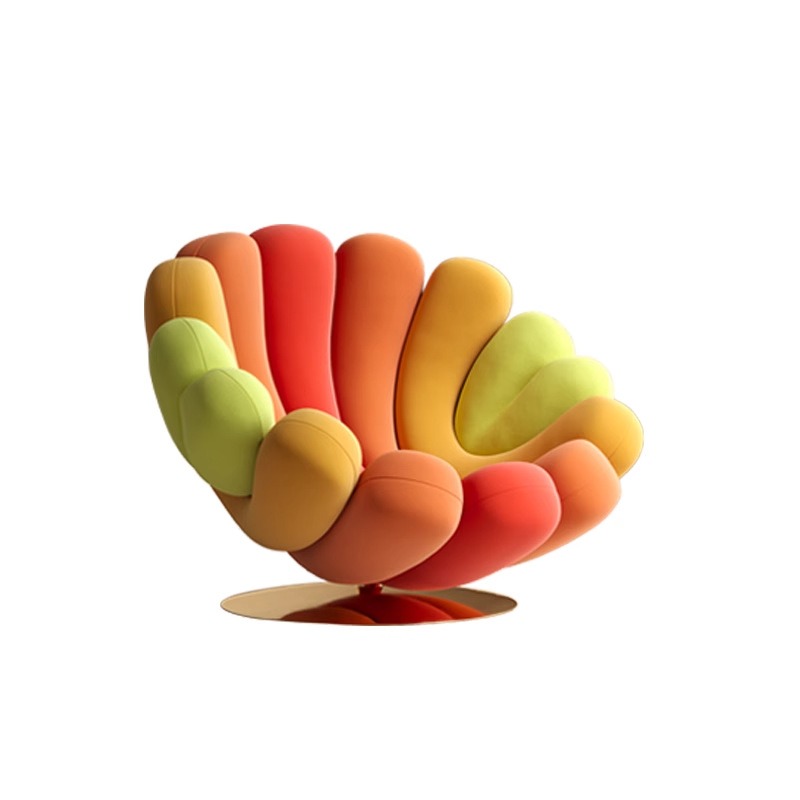 The chair features a unique and modern design reminiscent of a blooming flower or a collection of green waves. Its curving components create an organic, fluid shape, evoking both movement and comfort. The color transitions from a darker shade of green at the base to a vibrant lime green at the tips, enhancing its dynamic appearance. This sculptural chair would stand out as both functional furniture and an artistic statement in any space.